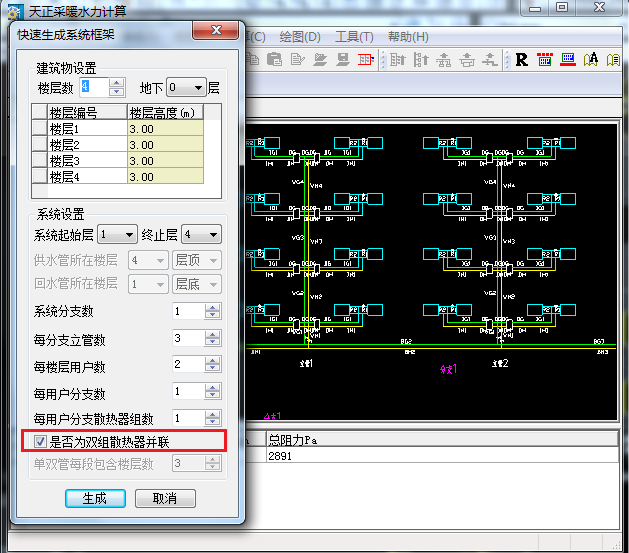 根據(jù)各層平面數(shù)據(jù)自動生成各類采暖形式系統(tǒng)圖,所有平面標(biāo)注信息可自動帶入系統(tǒng)圖,輕松實(shí)現(xiàn)了平面圖和系統(tǒng)圖上散熱器片數(shù)、管徑等標(biāo)注信息一一對應(yīng),沒有遺漏,極大減少設(shè)計人員校核圖紙的工作量。