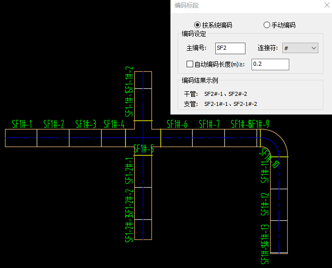 【風(fēng)管標(biāo)段】模塊,【標(biāo)段設(shè)置】支持設(shè)置風(fēng)管拆分為標(biāo)準(zhǔn)長度風(fēng)管的標(biāo)準(zhǔn)件規(guī)格,提供不同的拆解件生成方式,支持按管材或者按自定義規(guī)則;【風(fēng)管標(biāo)段】支持將使用天正繪制的風(fēng)管,按照標(biāo)段設(shè)置中設(shè)定的拆解規(guī)則以及對應(yīng)的標(biāo)準(zhǔn)長度,拆解為多段標(biāo)準(zhǔn)長度風(fēng)管;【風(fēng)管捕捉】支持繪制風(fēng)管時捕捉標(biāo)準(zhǔn)長度點(diǎn);【編碼標(biāo)段】支持將執(zhí)行過風(fēng)管標(biāo)段命令拆解為標(biāo)準(zhǔn)長度的風(fēng)系統(tǒng)或者風(fēng)管進(jìn)行編碼;【標(biāo)注標(biāo)段】支持對標(biāo)準(zhǔn)長度的風(fēng)管,進(jìn)行連續(xù)標(biāo)注;【輸出標(biāo)段】支持將已經(jīng)拆解為標(biāo)準(zhǔn)長度的風(fēng)管進(jìn)行統(tǒng)計并輸出表格。