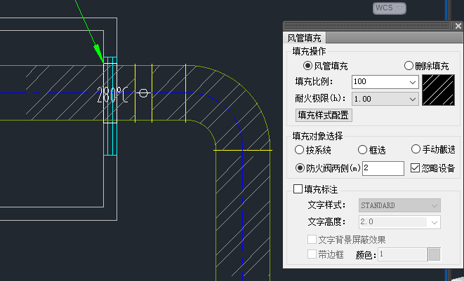 【風(fēng)管填充】功能,增加風(fēng)管填充的不同生成方式,提供指定長度和防火閥側(cè)指定位置添加填充。