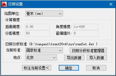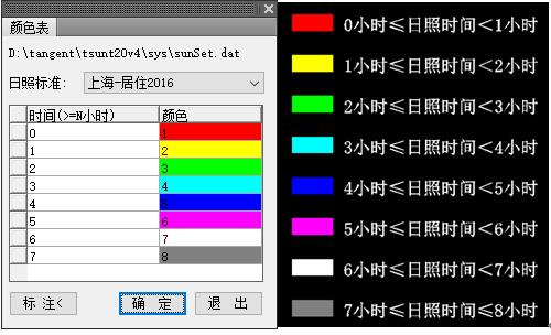 T20-Sun中各種日照分析命令的輸出結(jié)果(包括數(shù)字、曲線)的顏色可以通過(guò)顏色表定制,按照用戶的要求自動(dòng)輸出,定制一次便可一勞永逸。