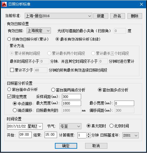 包含窗臺(tái)面中點(diǎn)分析、窗臺(tái)面兩端點(diǎn)分析、窗臺(tái)面多點(diǎn)分析三種窗戶采樣的分析方法,并且支持最新的日照基準(zhǔn)年。