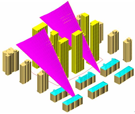 對(duì)切割器或光線圓錐范圍內(nèi)的遮擋建筑部分進(jìn)行切割,用于調(diào)整擬建建筑三維體塊大小。