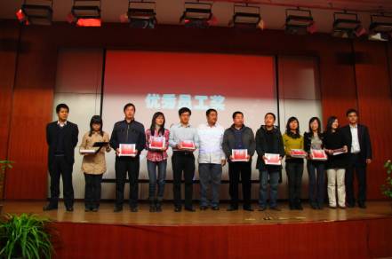 接著是公司最激動(dòng)人心的優(yōu)秀員工頒獎(jiǎng)環(huán)節(jié),優(yōu)秀員工的工作格言和2011財(cái)年目標(biāo)激勵(lì)著臺(tái)下所有的員工和領(lǐng)導(dǎo),讓大家看到了他們獲獎(jiǎng)的原因和動(dòng)力。頒獎(jiǎng)儀式中,在激昂的樂(lè)曲聲中,優(yōu)秀員工和優(yōu)秀新員工走上臺(tái)來(lái)接受公司領(lǐng)導(dǎo)的授獎(jiǎng),并發(fā)表了真切的獲獎(jiǎng)感言。